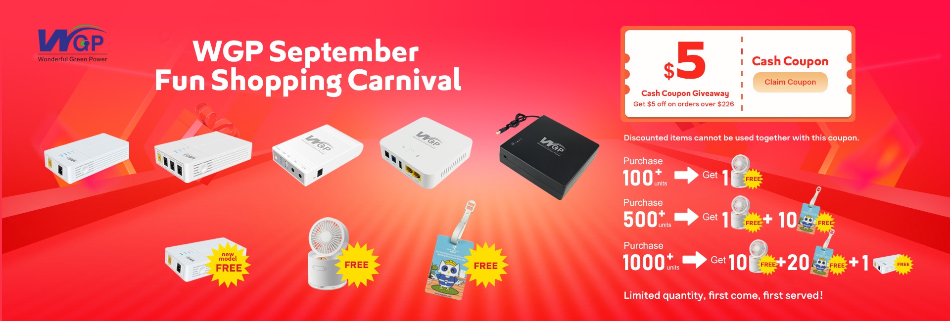 WGP-Batería portátil de respaldo, multisalida en línea, USB, 5V CC, 9V, 12V, Banco de energía, Mini UPS para WiFi, enrutador, cámara CCTV, teléfono móvil